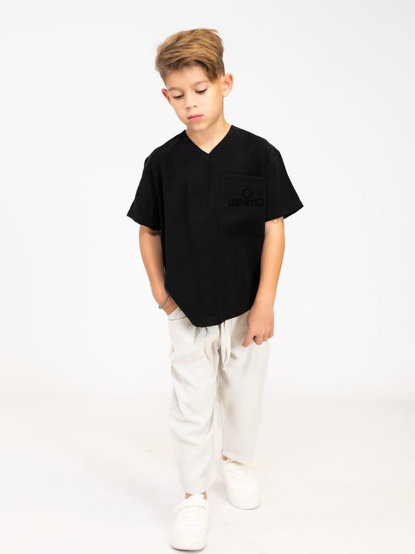 Σετ μαύρη κοντομάνικη μπλούζα με μπεζ παντελονι