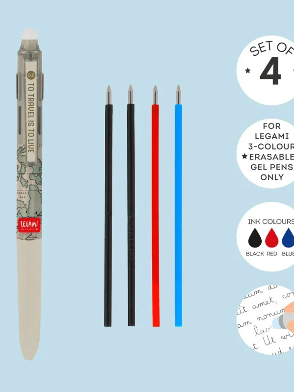 LEGAMI. Make Mistakes. Σετ 4 ανταλλακτικών για το στυλό 3 χρωμάτων που σβήνει.
