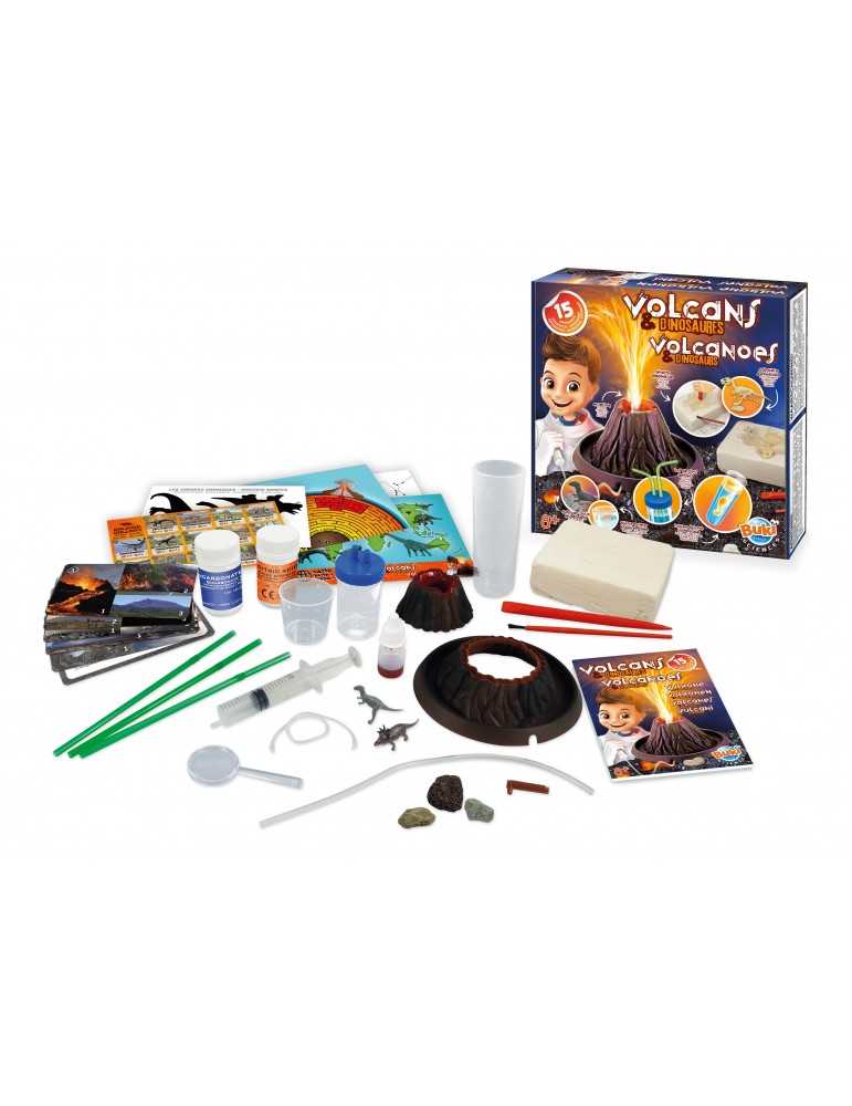 Ανακαλύψτε 15 πειράματα τα οποία μπορείτε να κάνετε με ηφαίστεια και δεινοσαύρους: Δημιουργία ηφαιστείου με εκρήξεις στο σπίτι, μελέτη ηφαιστειακών πετρωμάτων, φτιάξτε τη δική σας λάμπα από λάβα, κάντε ανασκαφή για τα μέλη ενός τυραννόσαυρου και μετά συναρμολογήστε τον.