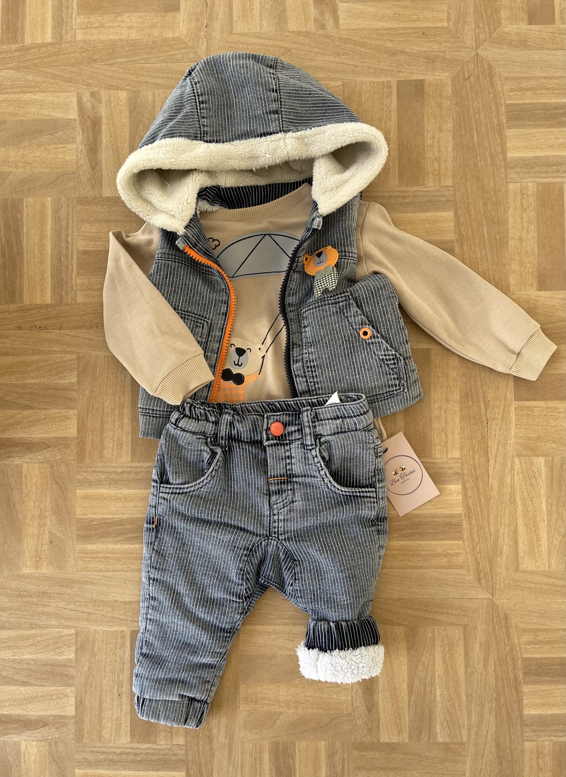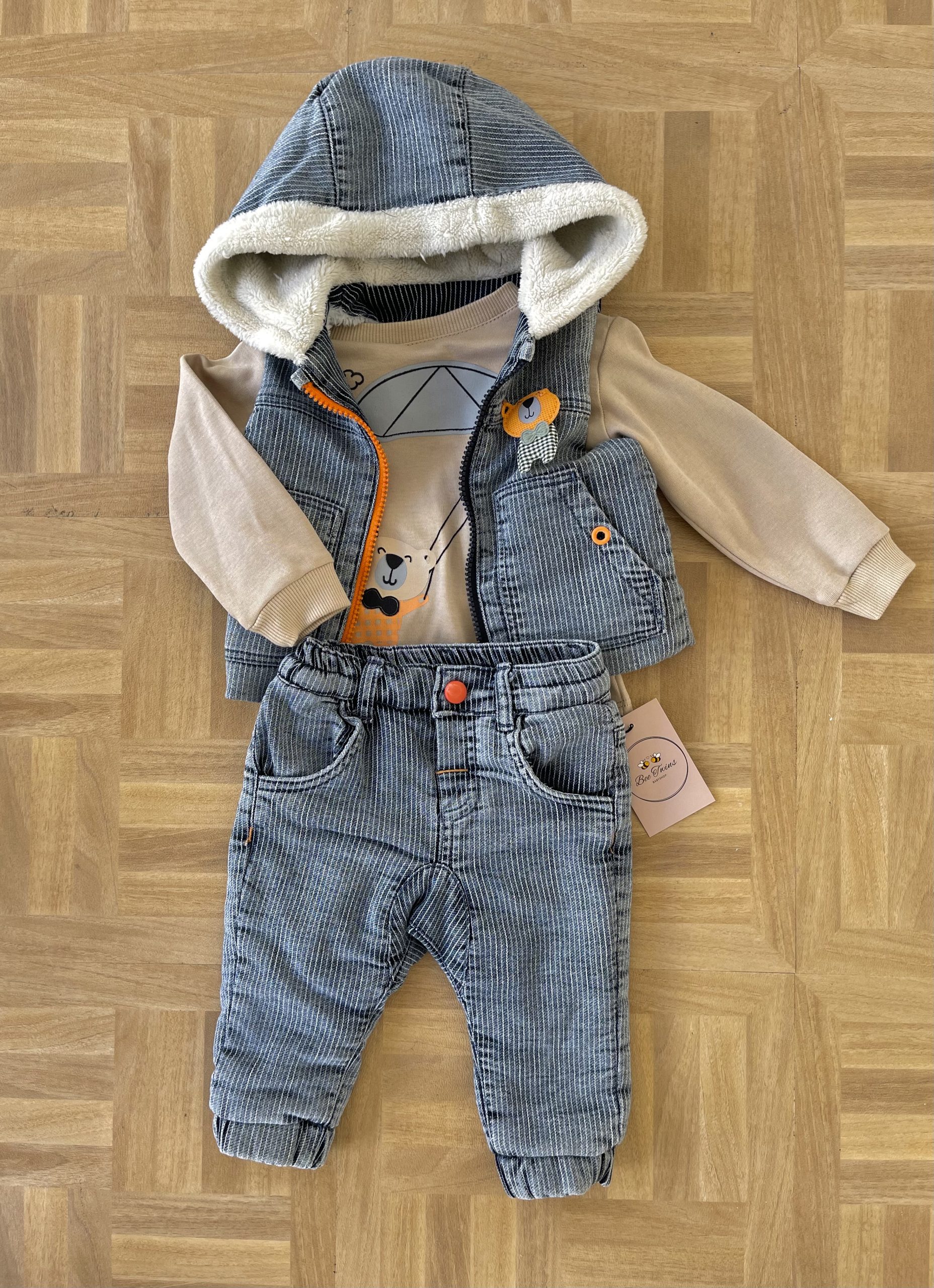 Κοτλε σετ παντελόνι με επένδυση γούνα από μέσα, μπλουζάκι μακρυμάνικο και αμανικο μπουφανακι και αυτό με επένδυση από μέσα πολύ ζεστό!