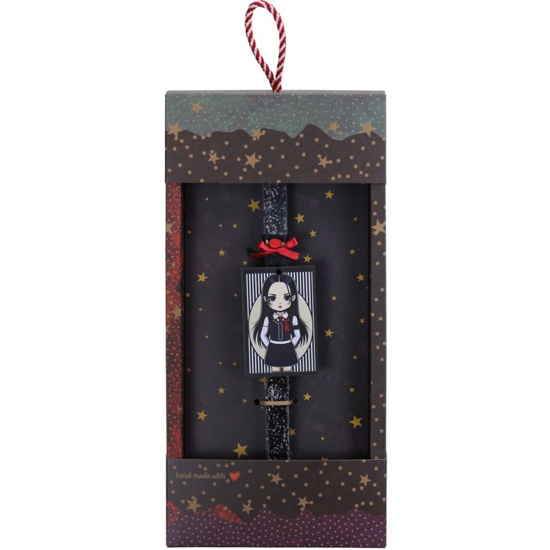 Μια λαμπάδα με ένα κορίτσι με πολύ σοβαρό ύφος, μαύρα μακριά μαλλιά, λευκό γιακαδάκι και clean look. Τα κορίτσια την λατρεύουν και σίγουρα θα λατρέψουν και αυτή την λαμπάδα. Θα την βρείτε σε τρεις εκδοχές για να επιλέξετε. Τα υλικά διακόσμησης είναι υψηλής ποιότητας και εισάγονται αποκλειστικά από την SYNCHRONIA. Τα αντικείμενα σχεδιάζονται ή επιλέγονται για την αισθητική, την αυθεντικότητα, την φιλικότητα προς το περιβάλλον και το δίκαιο εμπόριο. • Το κερί είναι αρωματικό, χειροποίητο και κατασκευάζεται στην Ελλάδα • Περιλαμβάνεται η εντυπωσιακή συσκευασία δώρου με ποτηράκι για το κερί • Ύψος λαμπάδας: 30εκ. • Μέγεθος συσκευασίας: 20×5,5×40 εκ.