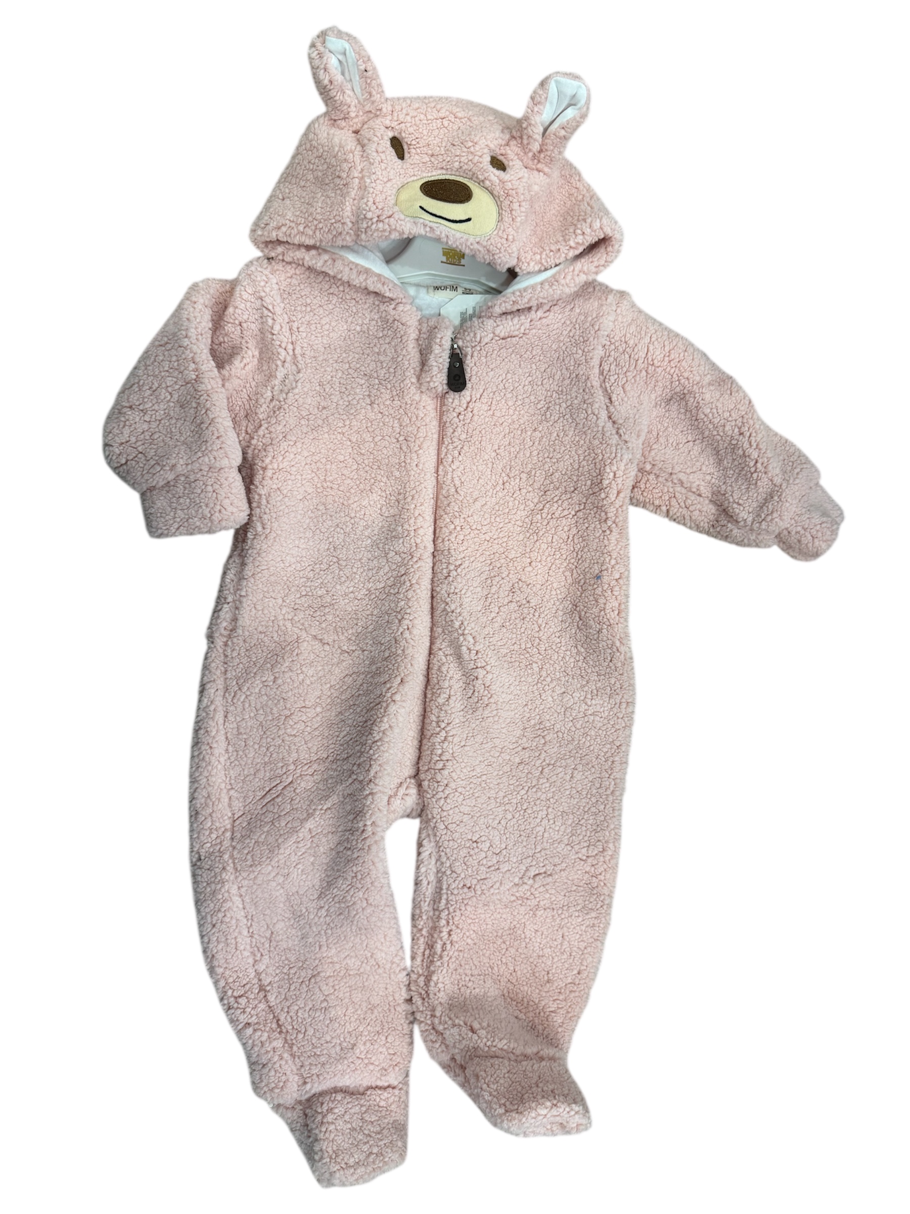 Χαριτωμένη και απίστευτα ζεστή βρεφική ολόσωμη φόρμα σε σχέδιο αρκουδάκι, ιδανική για τους κρύους μήνες. Κατασκευασμένη από απαλό, χουχουλιάρικο ύφασμα τύπου teddy, προσφέρει άνεση και προστασία στο μωρό όλη μέρα.
