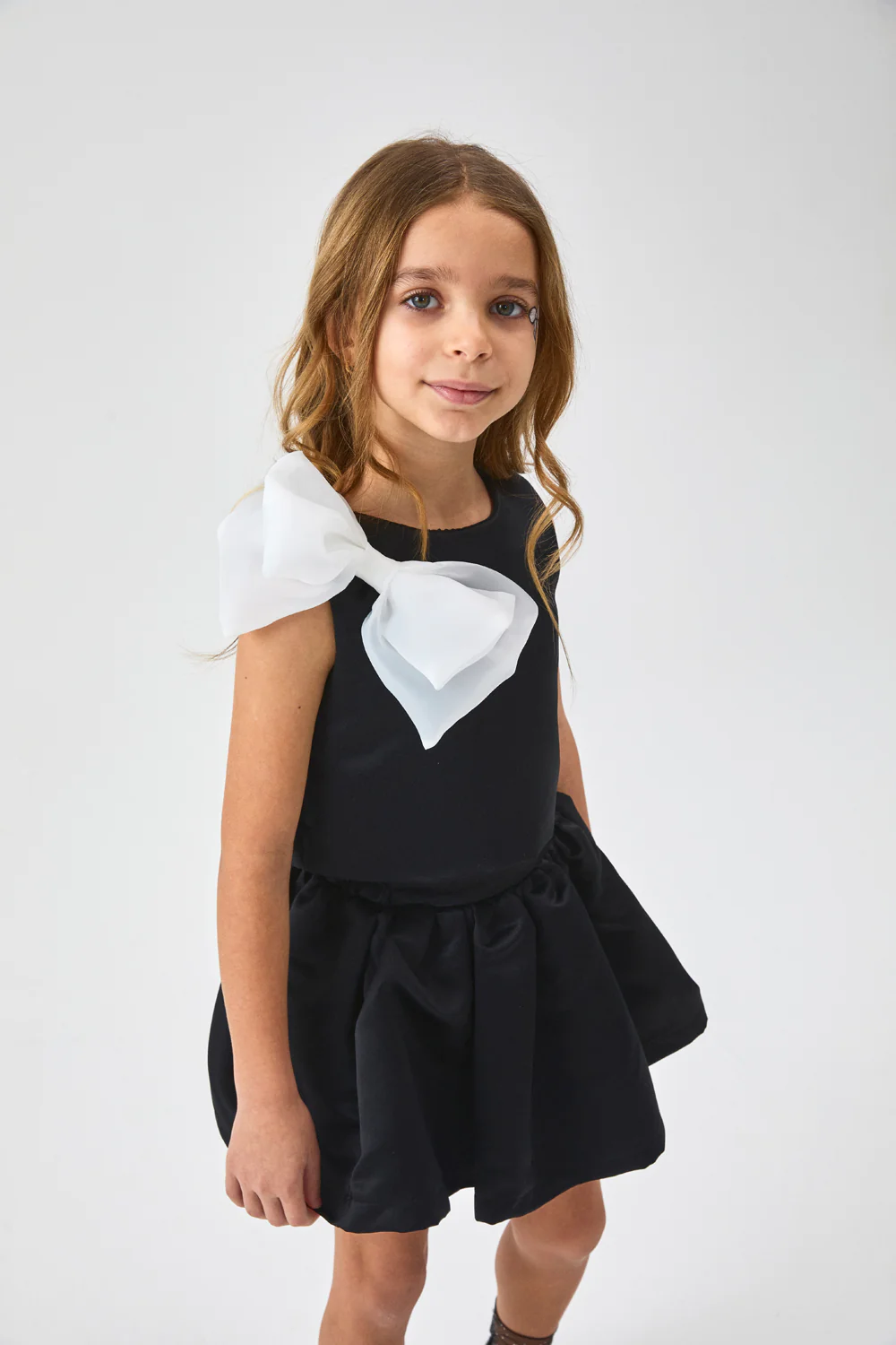 Το σετ 2 τεμαχίων με φούστα και φιόγκο από οργάντζα είναι μια τέλεια επιλογή που συνδυάζει κομψότητα και κομψότητα. Το ύφασμα από 100% πολυεστέρα και η εσωτερική επένδυση εξασφαλίζουν άνεση και ανθεκτικότητα. Οι λεπτομέρειες με φιόγκο από οργάντζα προσθέτουν μια πινελιά κομψότητας στο σετ, καθιστώντας το ιδανική επιλογή για κάθε ειδική περίσταση. Είναι ο τέλειος συνδυασμός για μικρά παιδιά που αναζητούν μια κομψή και άνετη εμφάνιση.