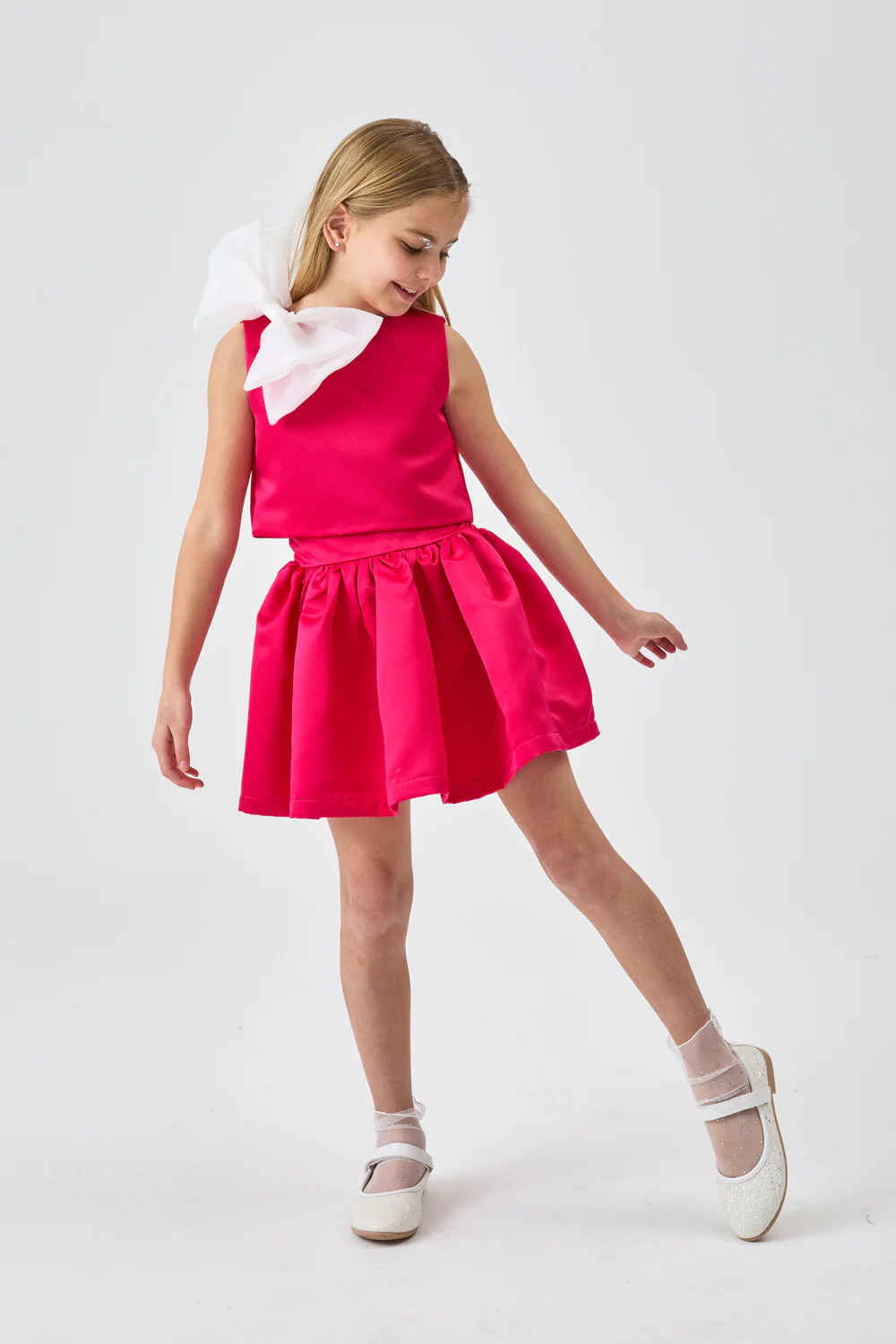 Το σετ 2 τεμαχίων με φούστα από οργάντζα με κοντό φιόγκο είναι μια τέλεια επιλογή που συνδυάζει κομψότητα και κομψότητα. Το ύφασμα από 100% πολυεστέρα και η εσωτερική επένδυση εξασφαλίζουν άνεση και ανθεκτικότητα. Οι λεπτομέρειες με φιόγκο από οργάντζα προσθέτουν μια πινελιά κομψότητας στο σετ, καθιστώντας το ιδανική επιλογή για κάθε ειδική περίσταση. Είναι ο τέλειος συνδυασμός για μικρά παιδιά που αναζητούν μια κομψή και άνετη εμφάνιση.