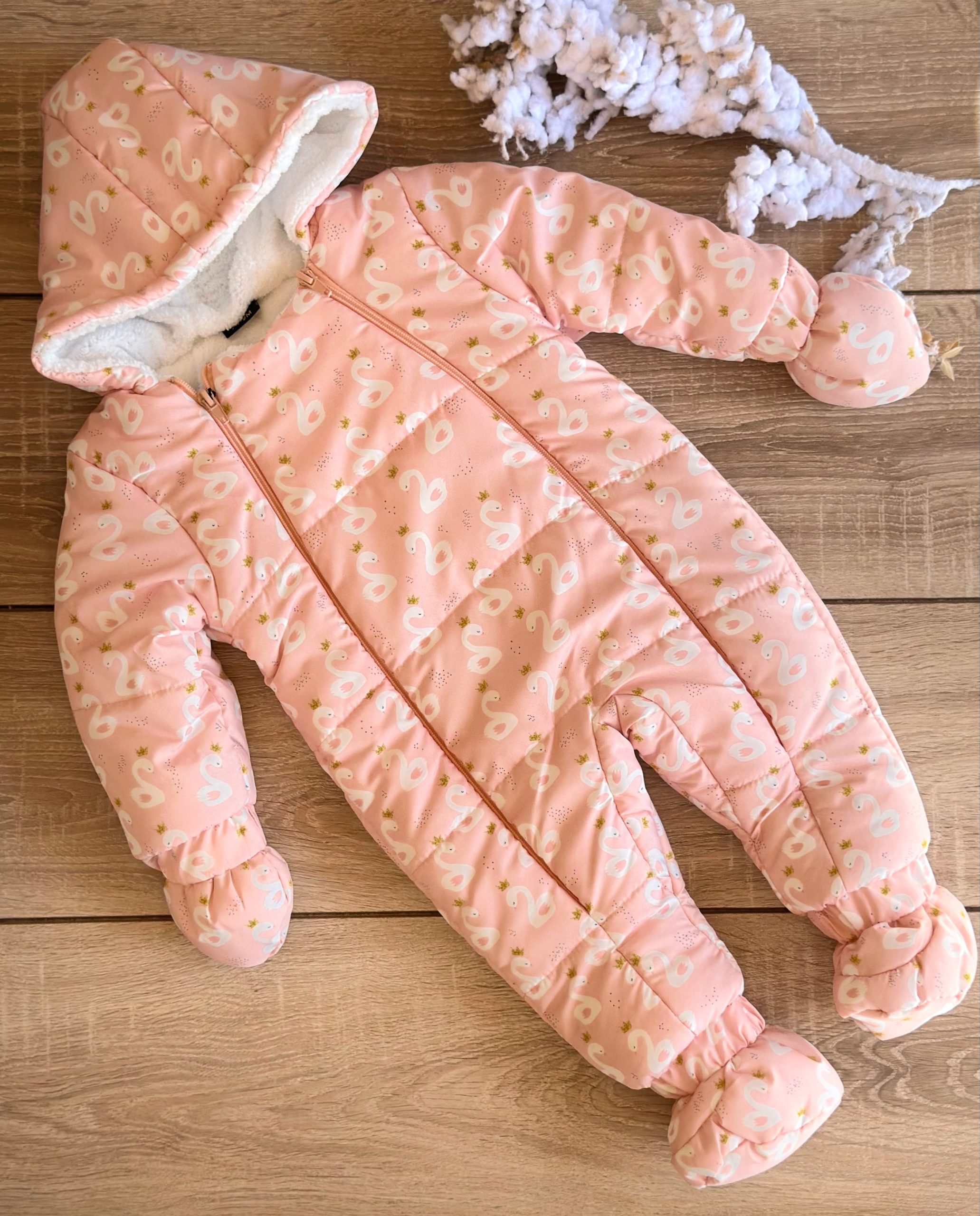 Ολόσωμο μπουφάν με γούνα από μέσα και προστατευτικά γάντια για τα ποδαράκια και τα χεράκια.