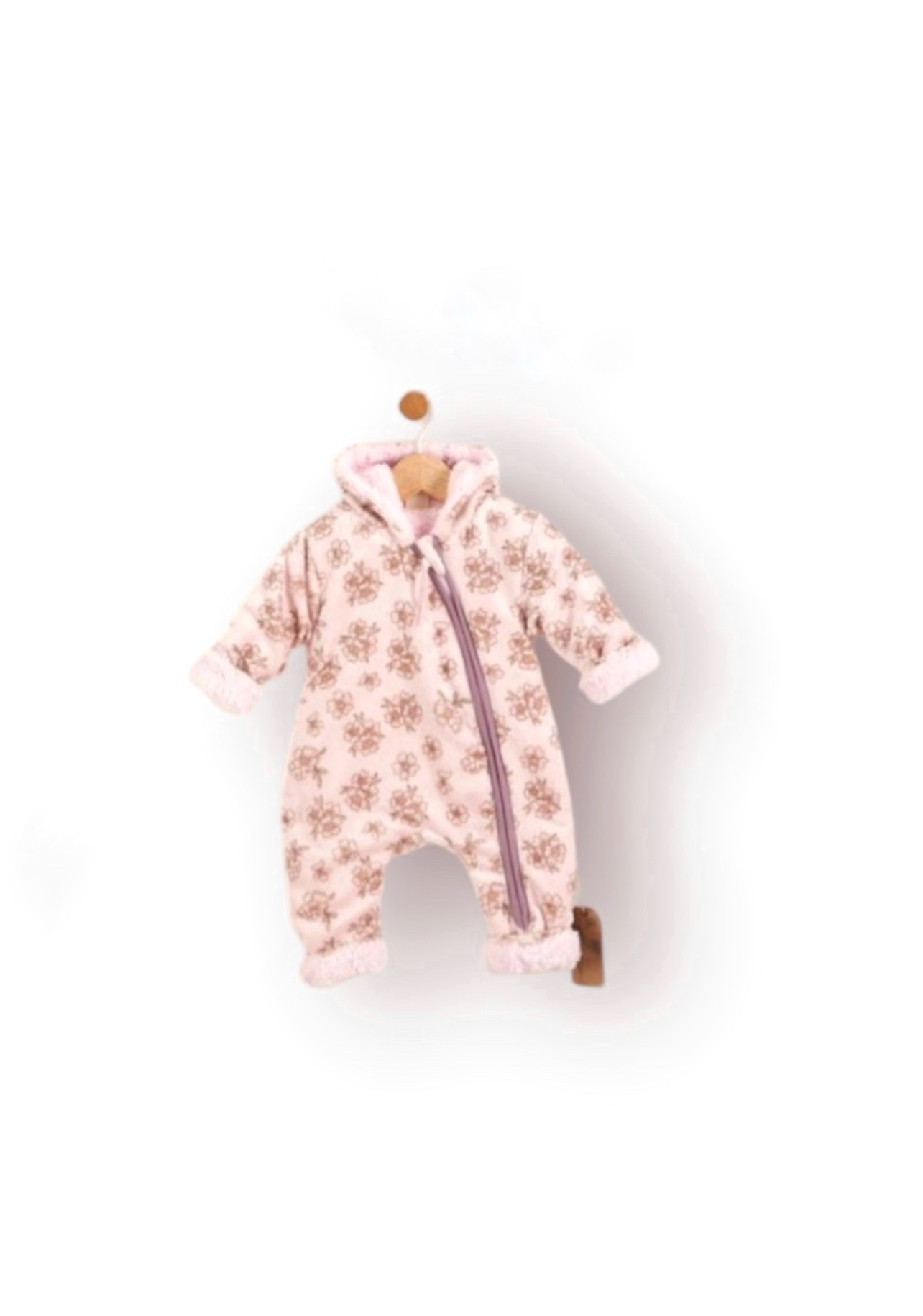 Ολόσωμο μπουφάν εξόδου με minimal λουλουδάκια γούνα στο εσωτερικό και φερμουάρ από πάνω έως κάτω.
