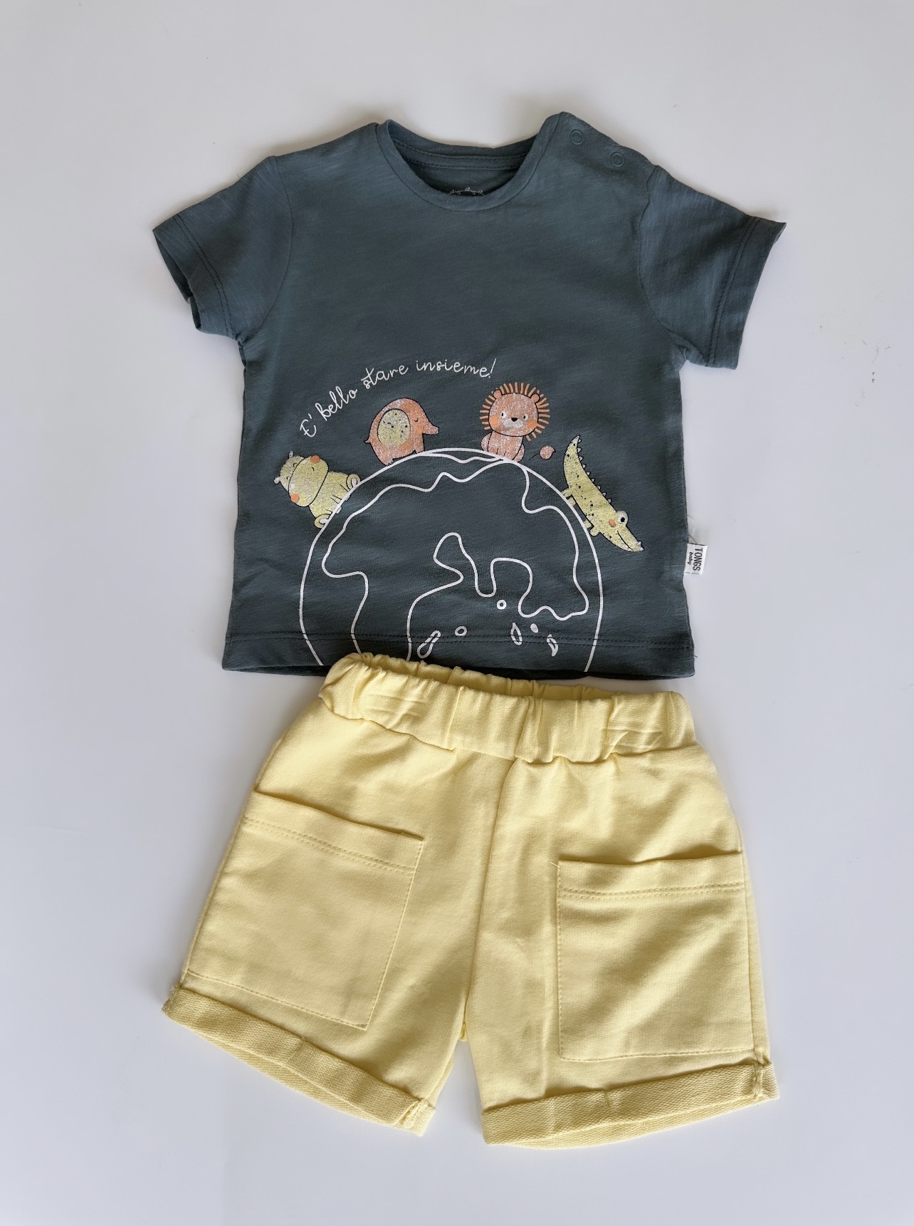 Σετ με κοντομάνικο μπλουζάκι και κίτρινο σορτς με τσέπες στο μπροστινό μέρος.