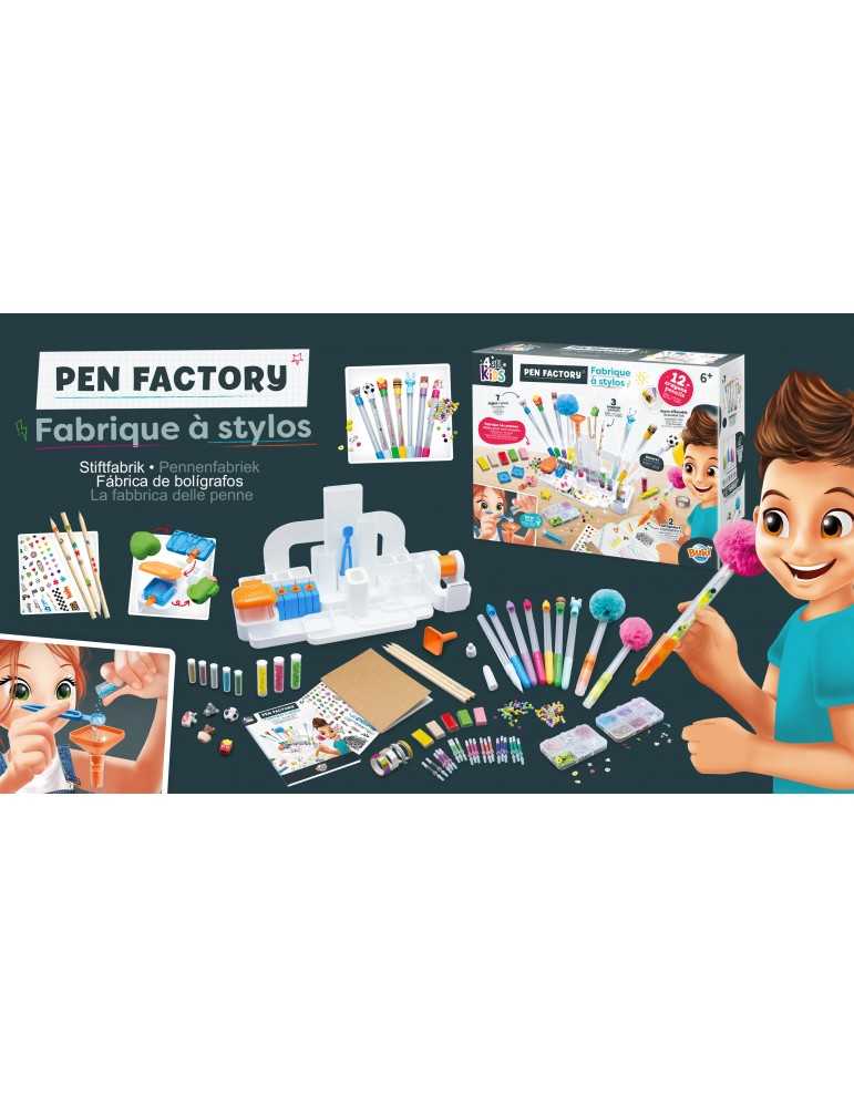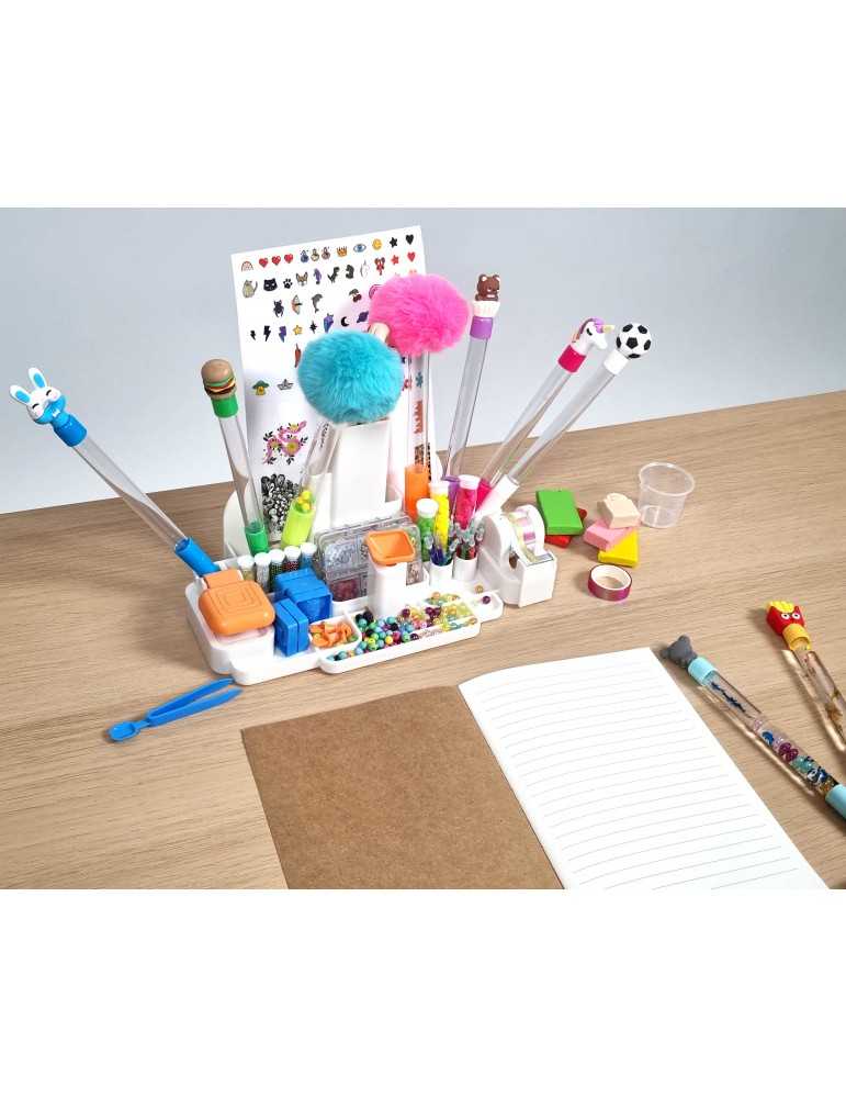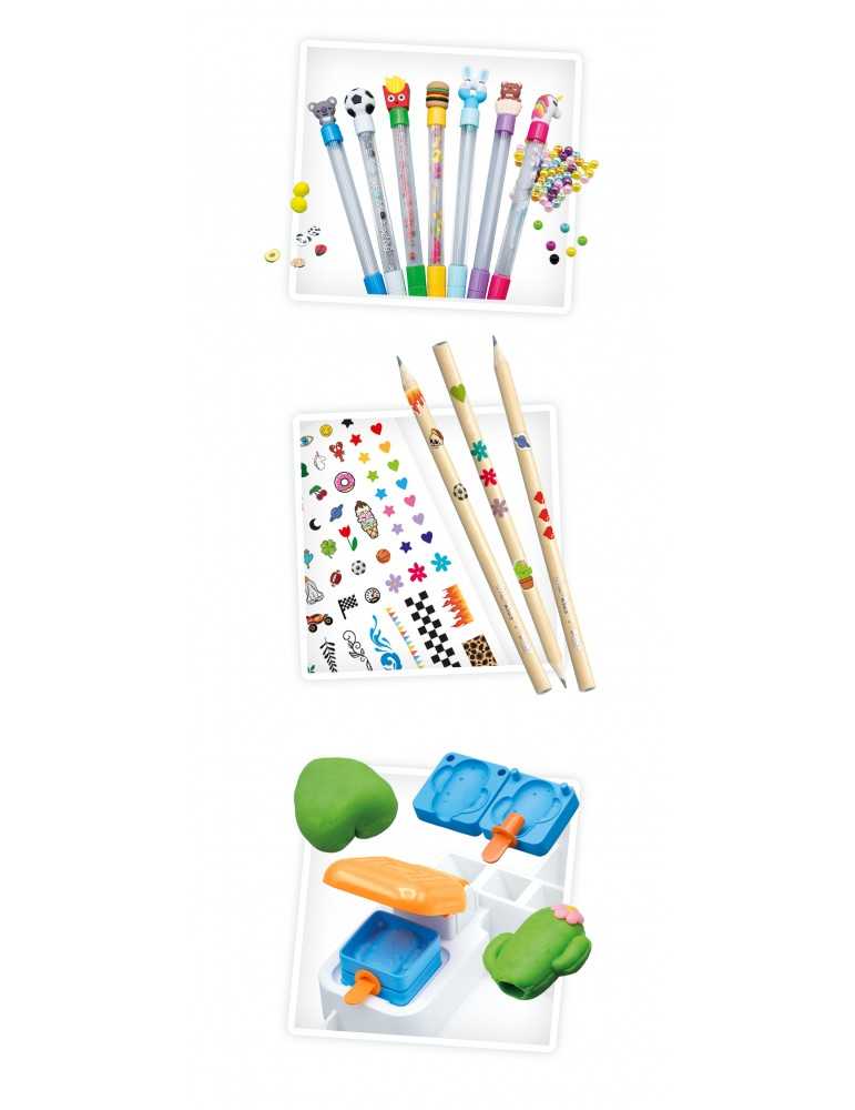 Ένας σταθμός για την κατασκευή στυλό τριβής! Χρησιμοποιήστε την πιπέτα και το χωνί για να γεμίσετε το στυλό με νερό και διακοσμητικά. Φτιάξτε τις δικές σας γόμες με το περιλαμβάνονται καλούπια, με τα οποία μπορείτε να χρησιμοποιήσετε τα σβησίματα μελανιού στυλό σας! Χρήστη κολλητική ταινία για τη διακόσμηση σας σημειωματάριο . Περιλαμβάνει: διάφορα στυλό μελανιού με δυνατότητα διαγραφής, ποικιλία από πάστες για τη δημιουργία γόμων, καλούπια, χωνί, σημειωματάριο Α5 για διακόσμηση, κολλητική ταινία, αυτοκόλλητα Εικονογραφημένες οδηγίες .Προτεινόμενη ηλικία: 6+