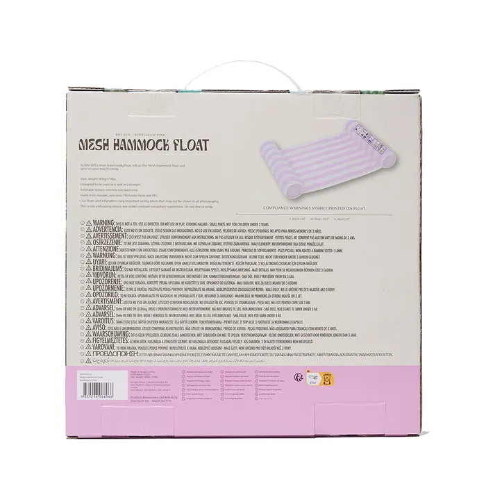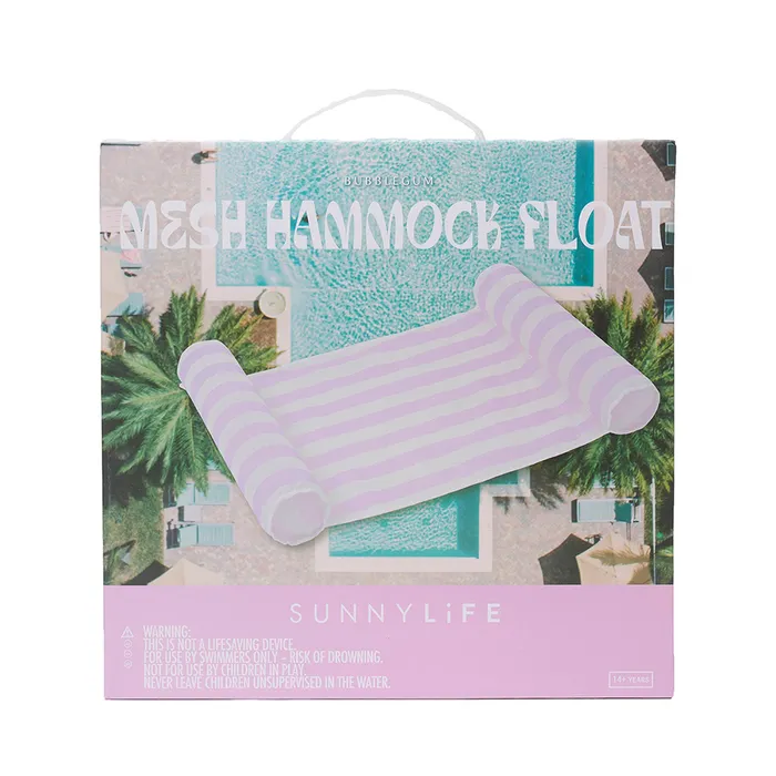 Φουσκωτή Αιώρα Sunnylife Mesh – Bubblegum Pink . Φουσκώστε το καλοκαίρι σας και δροσιστείτε στην πισίνα. Η φουσκωτή αιώρα Bubblegum Pink Mesh είναι κομψή, διασκεδαστική και ξέγνοιαστη, ιδανική για να λιάζεστε στον ήλιο και να παρασύρεστε από τον άνεμο. Σχεδιασμένη για να την απολαμβάνετε τόσο ως κάθισμα όσο και ως ξαπλώστρα, διαθέτει κέντρο από πλέγμα και φουσκωτό σωλήνα σε κάθε άκρο, ώστε να μπορείτε να βουτάτε μερικώς στο νερό. Έτοιμη να γίνει μια από τις πιο μοντέρνες φούσκες αυτής της σεζόν, τραβάει τα βλέμματα με το γλυκό ροζ και κρεμ μάξι ριγέ τύπωμα που θα σας κάνει να ακτινοβολείτε μόνο καλές στιγμές.