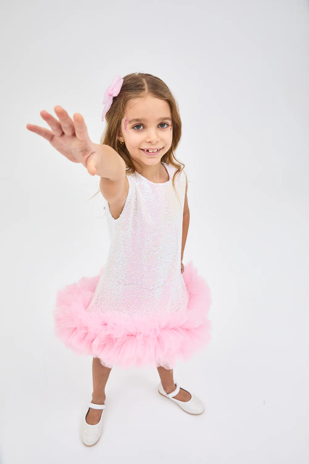 Αυτό το φόρεμα από τούλι, με στρογγυλή λαιμόκοψη και αμάνικο σχέδιο, είναι άνετο. Είναι κατασκευασμένο από 100% πολυεστερικό ύφασμα και έχει επένδυση. Είναι κατάλληλο για ειδικές περιστάσεις, πάρτι γενεθλίων και φανταχτερές εκδηλώσεις.
