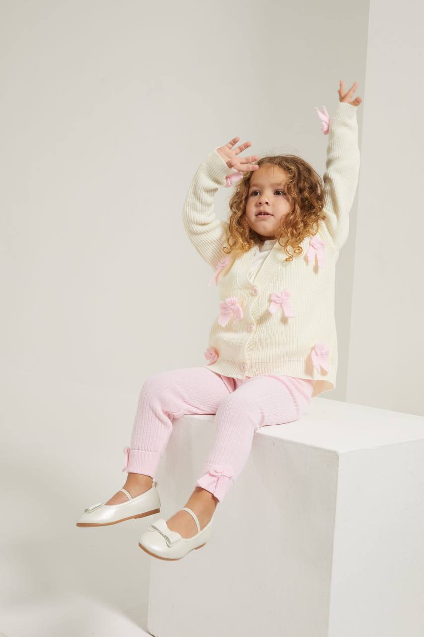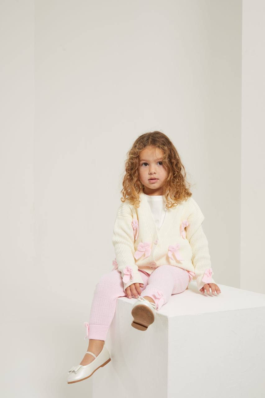 Διαθέτει πλεκτή ζακέτα και πλεκτό παντελονάκι.