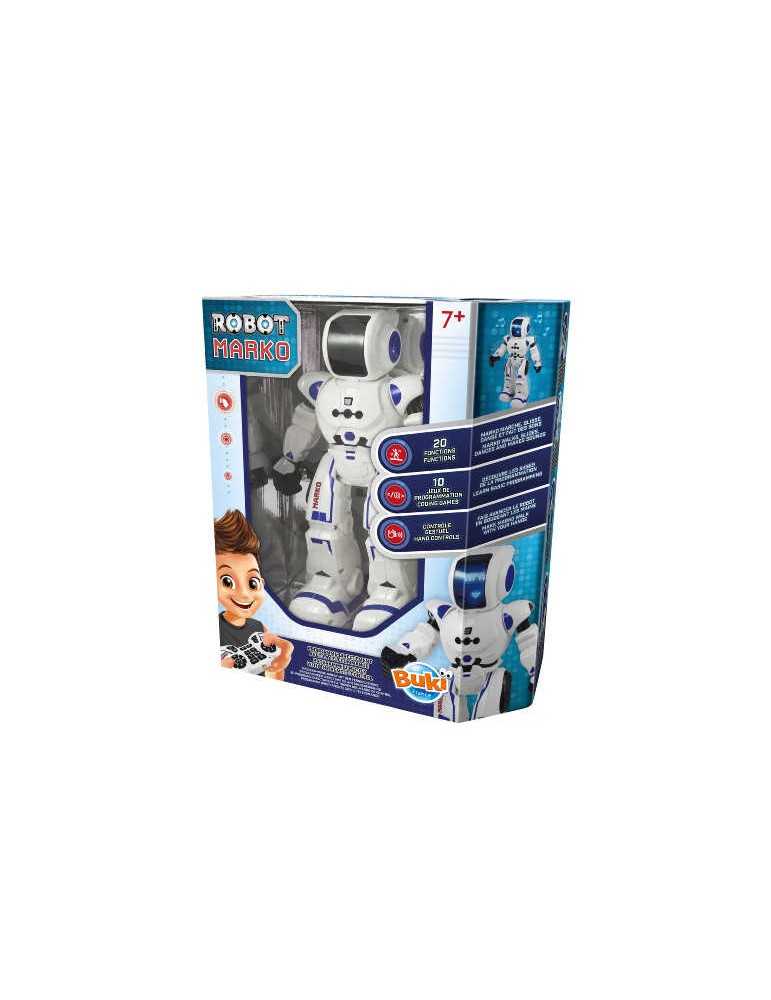 Ο Μάρκο είναι ένα επιδέξιο ρομπότ που μπορεί να κυλάει αλλά και να περπατάει. Τα βέλη που δείχνουν κατεύθυνση σου επιτρέπουν να κατευθύνεις το ρομπότ στις 4 κατευθύνσεις (μπροστά, πίσω, αριστερά και δεξιά).Μπορείς να αλλάξεις την ταχύτητα του Μάρκο. Πίεσε το κουμπί SPEED. Στη συνέχεια, επέλεξε την κατεύθυνση: το ρομπότ σου θα περπατήσει (αργή ταχύτητα) ή θα κυλίσει . Εάν πιέσεις παρατεταμένα το κουμπί SON ο Μάρκο θα σου δείξει τα χορευτικά βήματα που μόνο αυτός ξέρει να κάνει. Προσπάθησε να αντιγράψεις τις κινήσεις του. Εάν πιέσεις σύντομα το κουμπί SON για να ανακαλύψεις την τόσο ιδιαίτερη γλώσσα που μιλάνε τα ρομπότ. Κατάλληλο για παιδιά ηλικίας 7 ετών και άνω Το κουτί περιέχει: 1. ρομπότ MARKO 2. τηλεχειριστήριο 3. καλώδιο με USB