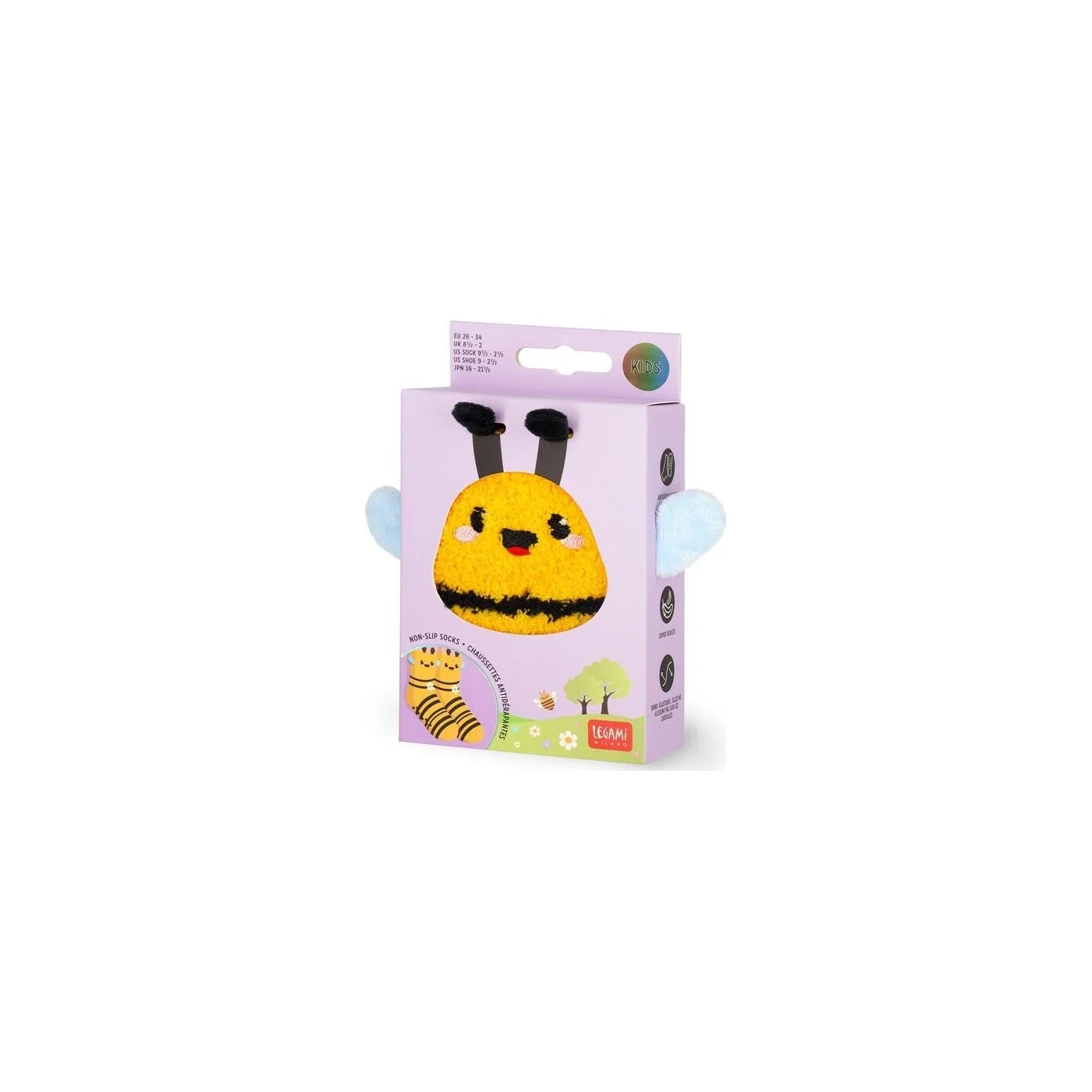 Για μία αξέχαστη εμφάνιση από το κεφάλι μέχρι το πόδι, δεν μπορείτε να κερδίσετε τις αντιολισθητικές κάλτσες της  Legami – It΄s A Match -Bee για κορίτσια και αγόρια. Διάλεξε το μοτίβο που σου αρέσει περισσότερο και απόλαυσε την επίδειξη κάθε τελευταίας πολύχρωμης λεπτομέρειας. Ανέδειξε τη μοναδική προσωπικότητα σου με πρωτότυπες, πολύχρωμε λεπτομέρειες.