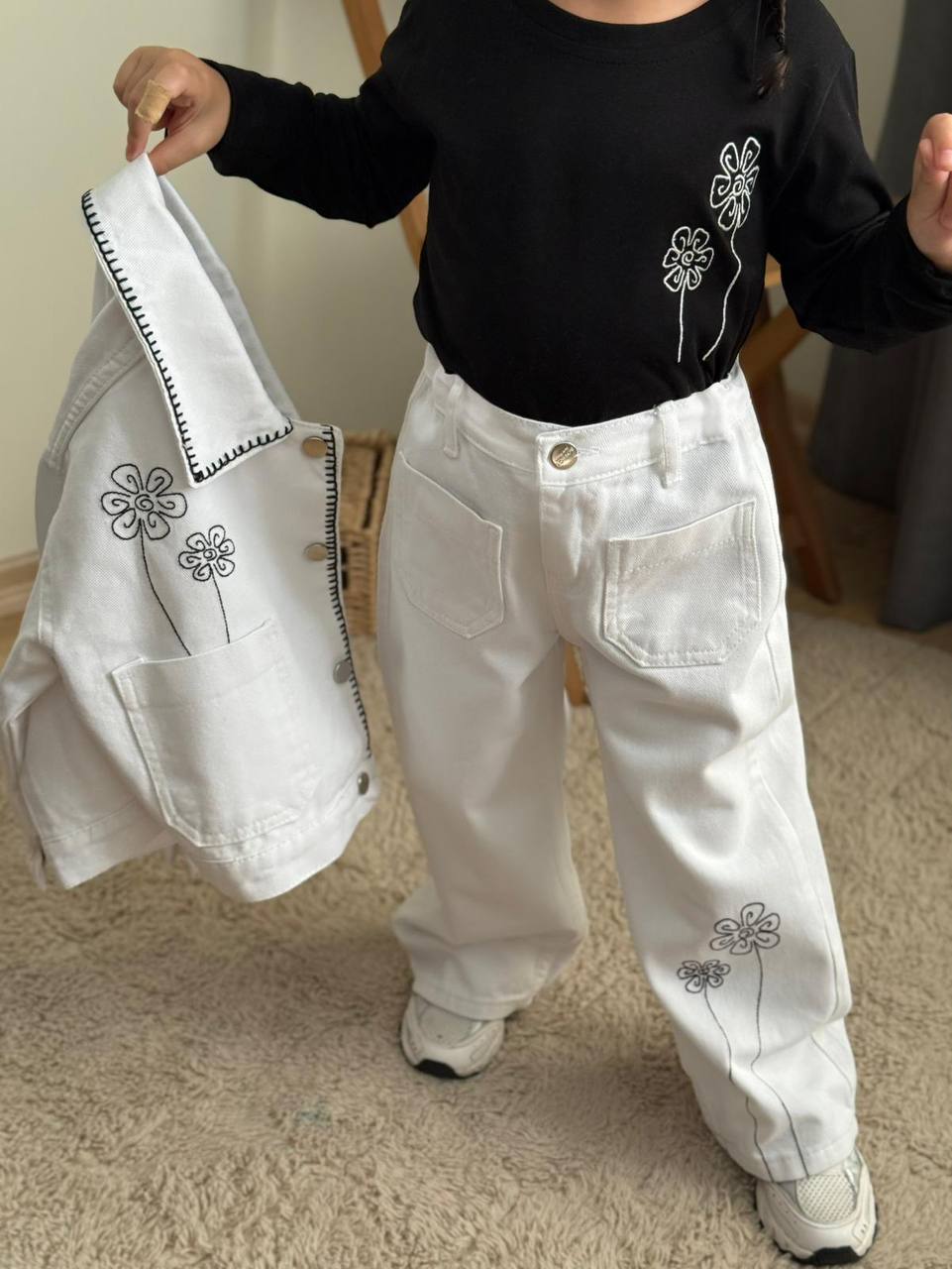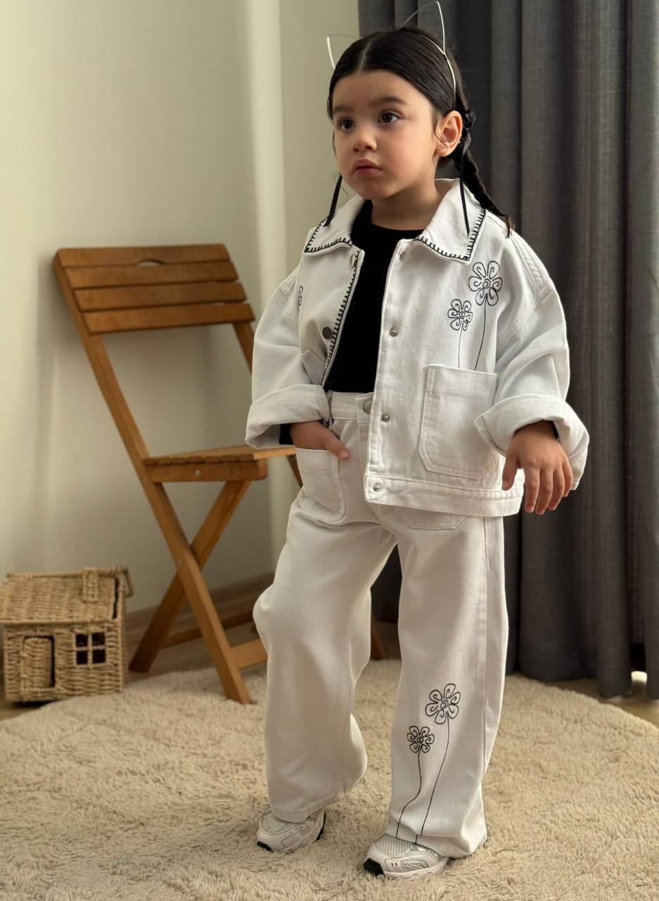 Αποτελείται από Jean Jacket,λευκό μπλουζάκι και Jean παντελόνι.